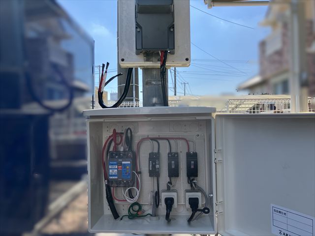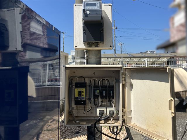 EVコンセント(電気自動車充電コンセント)設置、単三切替工事を行いました。工事のご依頼ありがとうございました。